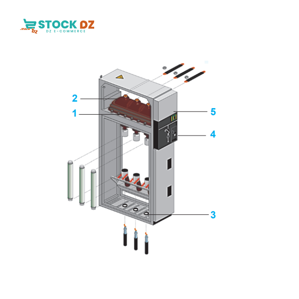 4 commande : comporte les éléments permettant de manœuvrer l’interrupteur et le sectionneur de terre ainsi que la signalisation correspondante (coupure certaine).